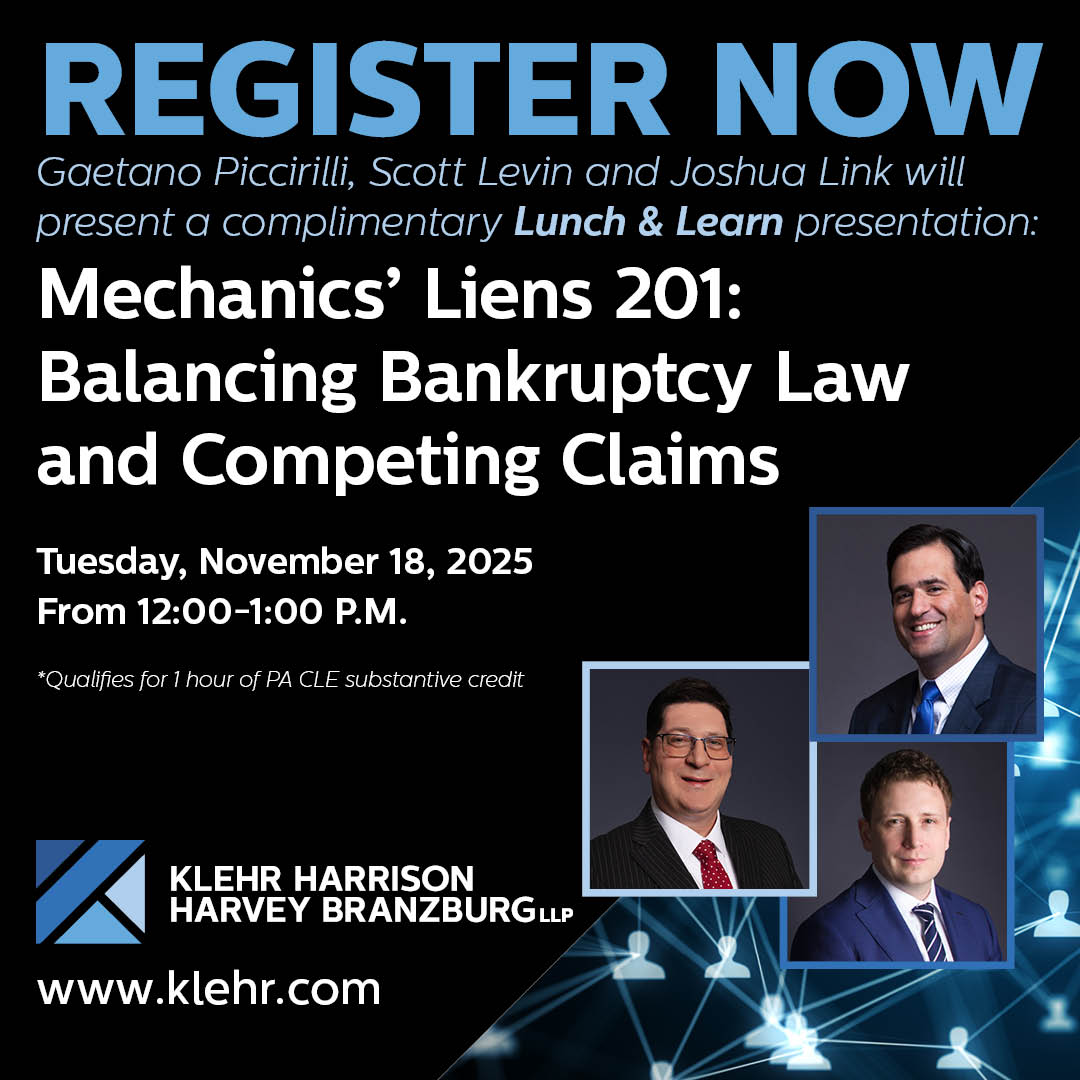 Klehr Harrison Harvey Branzburg LLP is a dynamic law firm known throughout the business, financial and legal communities for our aggressive and creative problem-solving skills. We provide legal excellence and innovative solutions. Sound business judgment. Practicality. Grit.